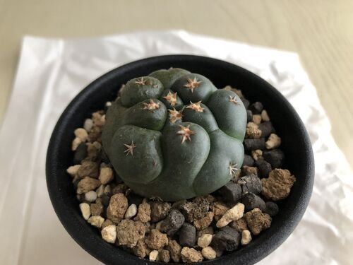 先週購入した短刺象牙丸のカキコです。まだまだ小さく子供ですが、疣の形や刺といい、個性的な株に育ちそうな感じがします!なんとなくアカダニ感もあるのでまずはダニ太郎で処理と予防立派な株に成長して欲しいもんです。それでは皆様も素敵なサボテンライ…